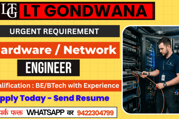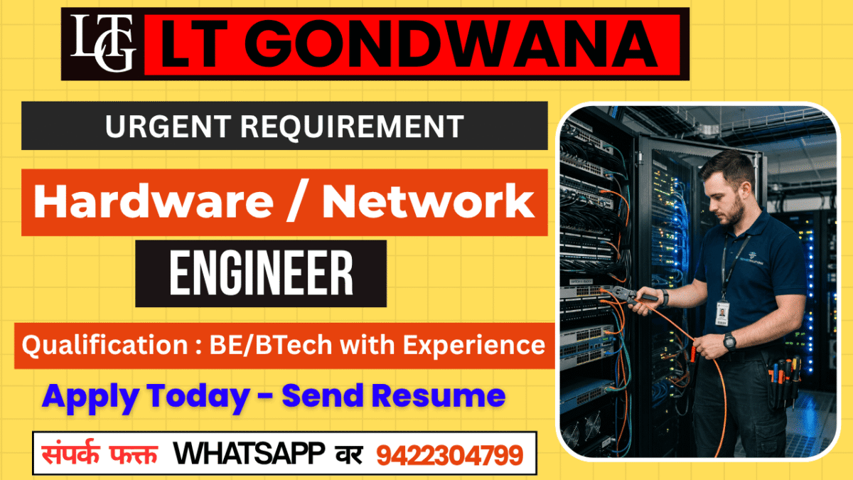 बोदली स्थित Lloyds Metals या कंपनीच्या Training Institute मध्ये Hardware / Network Engineer ची नेमणूक करावयाची आहे. Computer Science किंव्हा Electronics आणि Telecommunication शाखेतील पदवीधर किव्हा पदव्युत्तर शिक्षण झालेल्या उमेदवारांना प्राधान्य देण्यात येईल. BE / BTech अशी किमान व्यावसायिक अहर्ता असावी. Networking किव्हा Hardware चा अनुभव असल्यास प्राधान्य दिल्या जाईल. यासाठी पात्र उमेदवारांनी whatsapp नंबर वर आपला Resume तात्काळ सादर करावा. सदर पदाकरिता आकर्षक सॅलरी दिली जाणार आहे. BE / BTECH COMPUTER SCIENCE BE / B TECH IN ELECTRONICS AND TELECOMMUNICATION PRIORITY WILL BE GIVEN TO EXPERIENCED CANDIDATE अधिक माहितीसाठी https://news4pm.com ला संपर्क करा